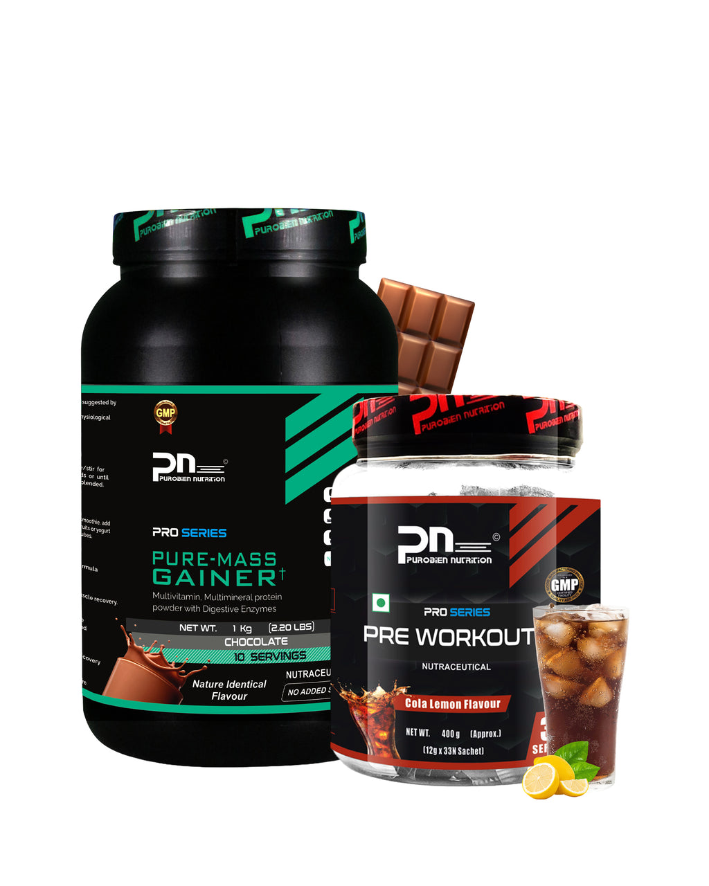 The Purobien Nutrition Muscle Gain Stack is built for individuals who want maximum workout energy and faster muscle size gains. This combo fuels your training with explosive power while ensuring your body gets the extra calories, protein, and nutrients required for mass building. Use the Pre Workout to push harder in the gym and the Mass Gainer to support recovery and muscle growthβmaking this the perfect training + nutrition pairing for consistent gains.